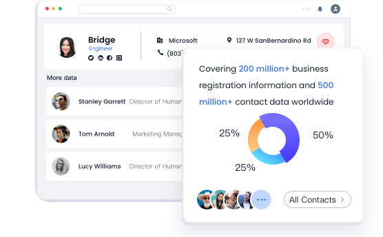 覆盖全球超过2亿的企业注册和超过5亿的联系人